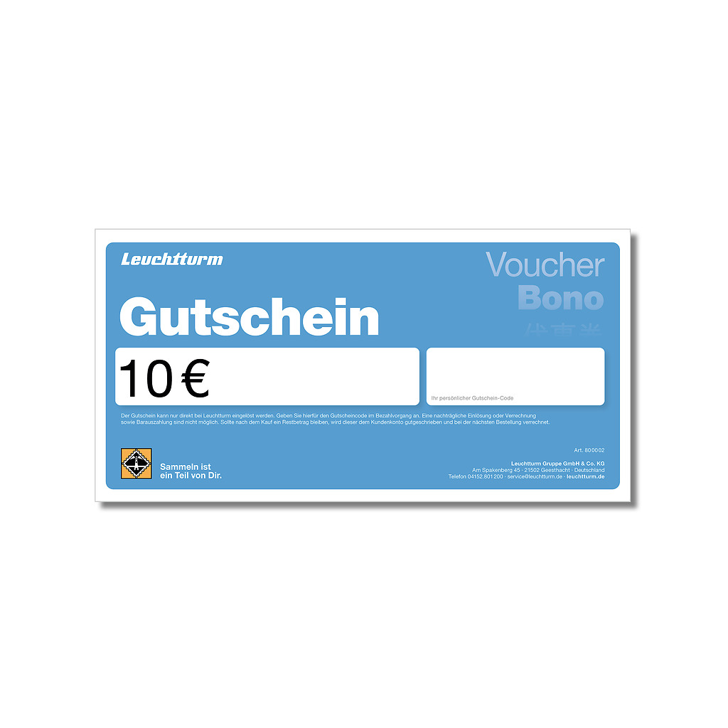 Avec le bon cadeau Leuchtturm, vous offrez une solution simple et flexible à tous les collectionneurs. Il convient parfaitement pour de nombreuses occasions, comme un anniversaire, un jubilé ou Noël, et peut être utilisé sur l’ensemble de l’assortiment Leuchtturm.