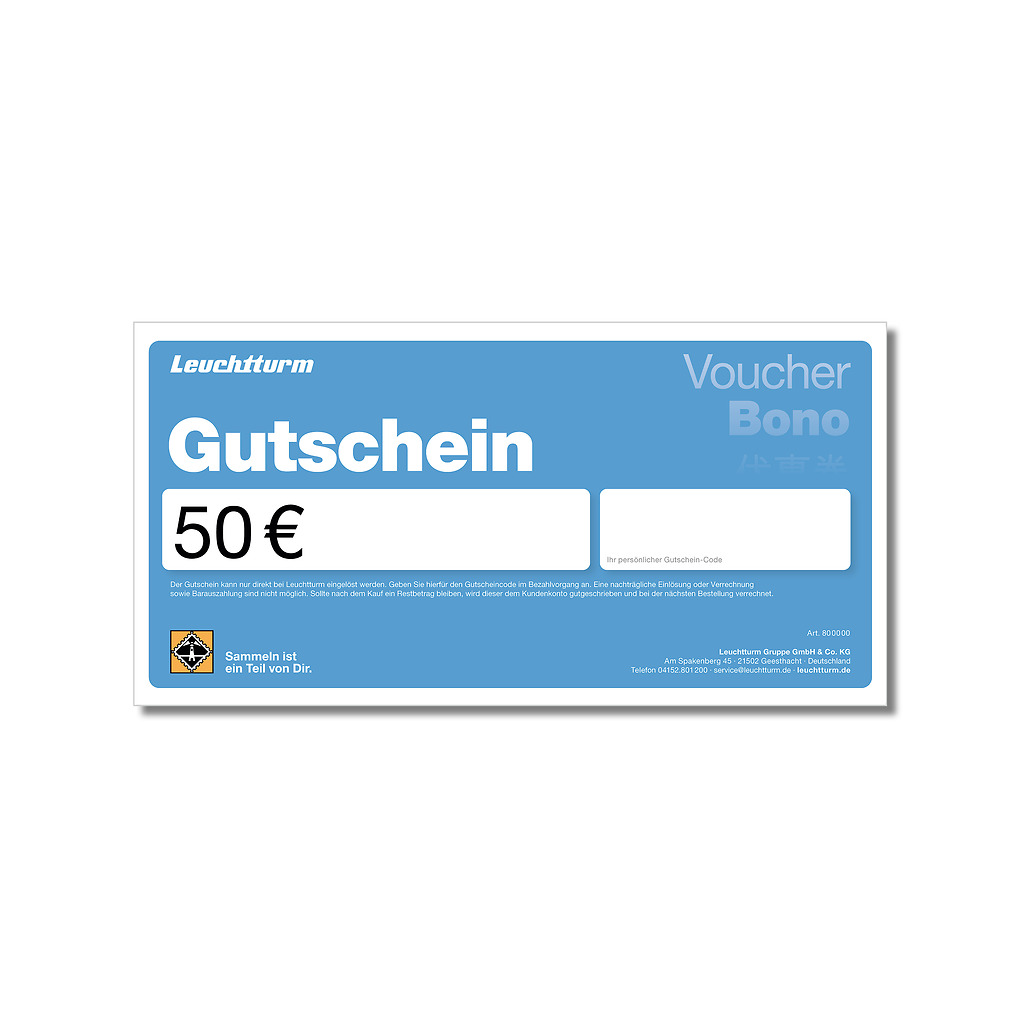 Avec le bon cadeau Leuchtturm, vous offrez une solution simple et flexible à tous les collectionneurs. Il convient parfaitement pour de nombreuses occasions, comme un anniversaire, un jubilé ou Noël, et peut être utilisé sur l’ensemble de l’assortiment Leuchtturm.