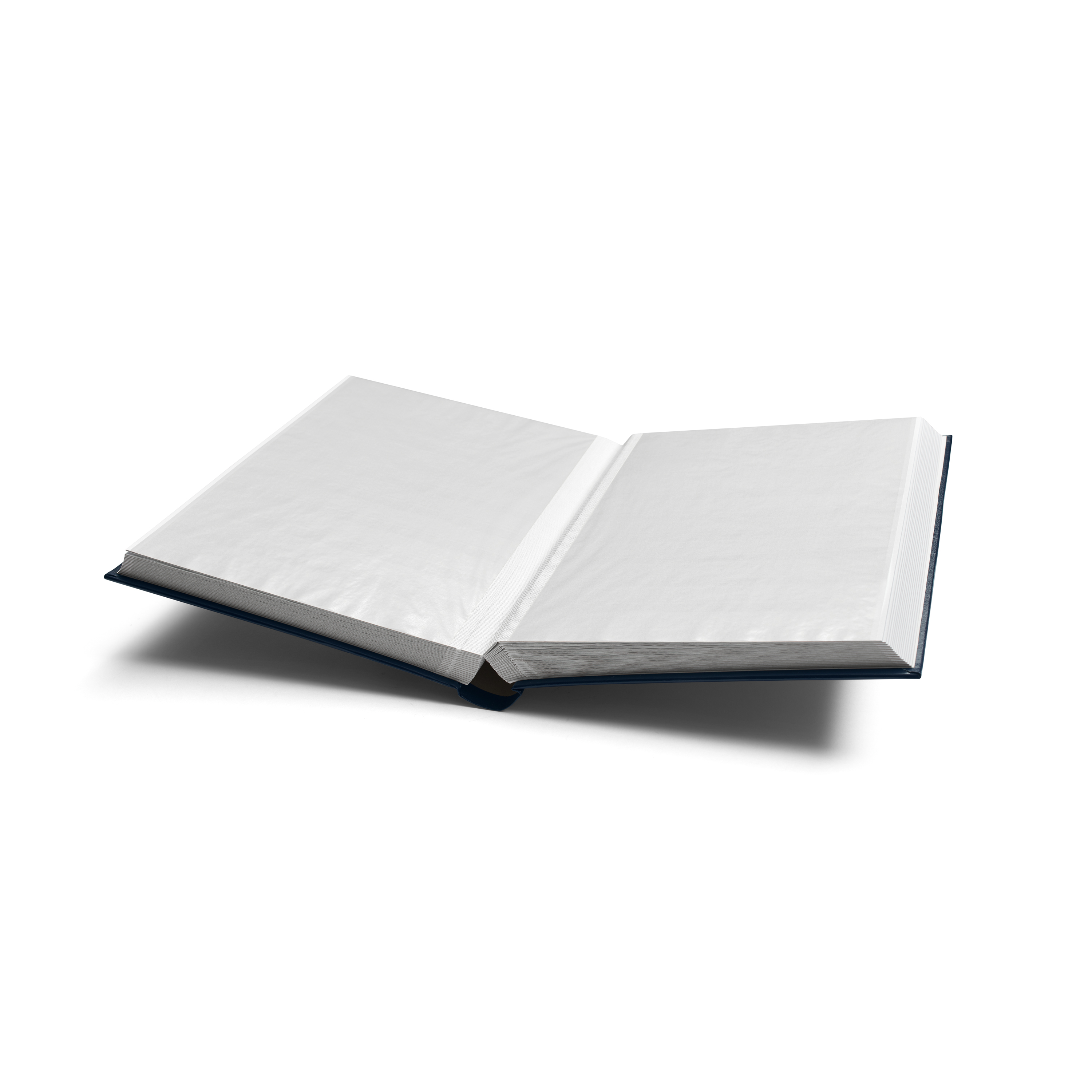 Classeur COMFORT en format A4 avec 64 pages, carton blanc. Couverture ouatinée dans effet cuir. 9 bandes cristal par page, double intercalaire, double articulation toilée (DGB). Couleur: Bleu.